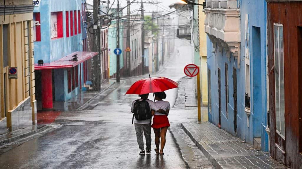 A couple walks in a street before Hurricane Melissa hits the city of Santiago de Cuba, Cuba. AFP