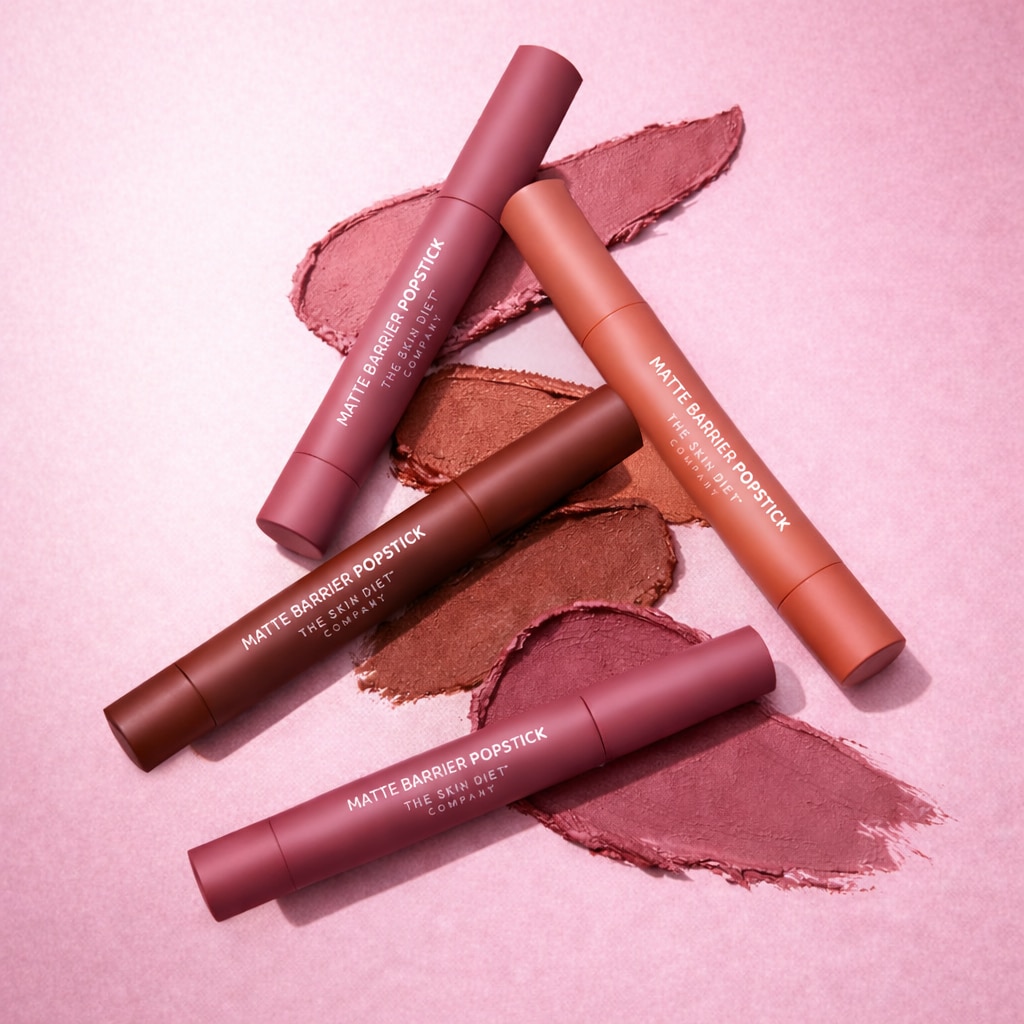 The Matte Barrier Popstick by The Skin Diet Company reimagines lip colour with a skincare-first approach. This 3-in-1 lip crayon works as a lipstick, liner, and contour, delivering rich pigment with a comfortable soft-matte finish that lasts up to eight hours. Infused with vegan collagen peptides, hyaluronic acid, and nourishing oils, it supports the lip barrier while locking in hydration. Available in four versatile shades: Italy Sun, London Edit, Paris Rose, and Newyork Nude, it offers effortless colour and care in one swipe.