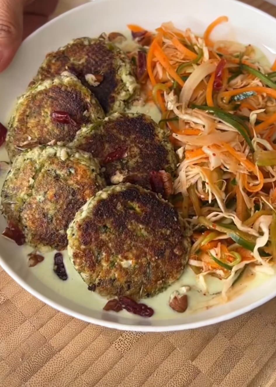 In a bowl, mix the prepared thecha with crumbled paneer and shape the mixture into small round tikkis.
