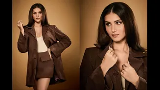 Leaning into one of the season’s most dominant palettes, Tara Sutaria opted for a rich chocolate-brown ensemble that balanced polish with sensuality. She wore an oversized blazer with strong, structured shoulders – a silhouette that nods to contemporary power dressing. She paired it with a coordinating mini skirt that kept the look youthful and fashion-forward. The deep brown hue anchored the outfit, lending it a grounded elegance that felt both timeless and trend-aware.
