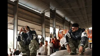 yet commanding pose as a crowd gathered around him, visibly drawn to his presence. The frame felt cinematic equal parts effortless cool and star power.