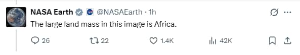 Some user even questioned what is the land mass visible in the photo asking, “What land mass is that.” To which NASA Earth responded, “The large land mass in this image is Africa.”