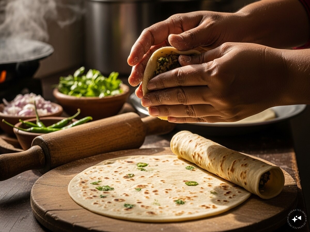 - Roll and Fill: Take a small portion of the dough and roll it into a circle. Spoon some of the sattu filling into the centre, seal the edges carefully, and roll it out gently into a paratha. Be cautious not to let the filling spill out.