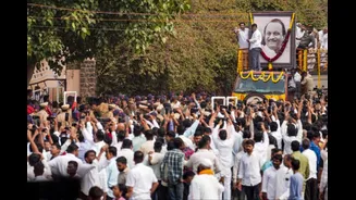 Thousands gathered as Pawar’s mortal remains, draped in the national flag, were brought from his village, Katewadi, to the funeral ground, chanting slogans in his memory.