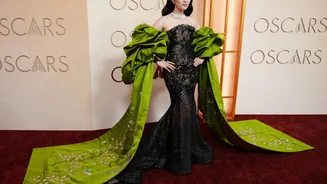 Gwyneth Paltrow opted for a minimalist approach with a Giorgio Armani Privé ivory silk gown, featuring a long cut-out design. Timothée Chalamet made a bold statement in an off-white Givenchy suit, accessorizing with rings and sunglasses.Fashion correspondent Samuel Hine commented on the evolving nature of men's fashion at the Oscars, highlighting a shift towards designer interpretations of traditional tuxedos.
