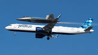 According to ABC, the pilot told the ATC that the US Air Force plane entered the same path and was at a distance of just 5 miles from their JetBlue flight.