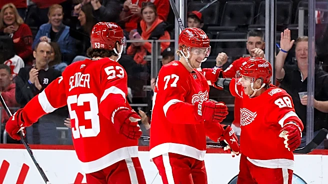 Alex DeBrincat put the Red Wings ahead with a power-play goal at 2:29 of the first period. DeBrincat took a pass from Lucas Raymond in front of the net and flipped a back-hand shot over the goalie's right shoulder for his 40th goal. He's the first Red Wing with a 40-goal season since Marian Hossa did it in 2008-09.