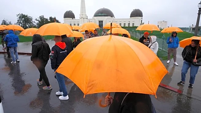 Still, Alex and Kateryna Tsykhanivski made a wet morning trek to the Griffith Observatory, which usually offers sweeping vistas of Los Angeles. The view Tuesday was obscured by heavy clouds as downpours intensified.