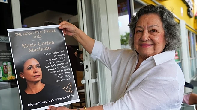 DORAL, Fla. (AP) — Venezuelans in “Little Venezuela” — the largest home for the country's natives in the United States — are welcoming the news that opposition leader Maria Corina Machado won the Nobel