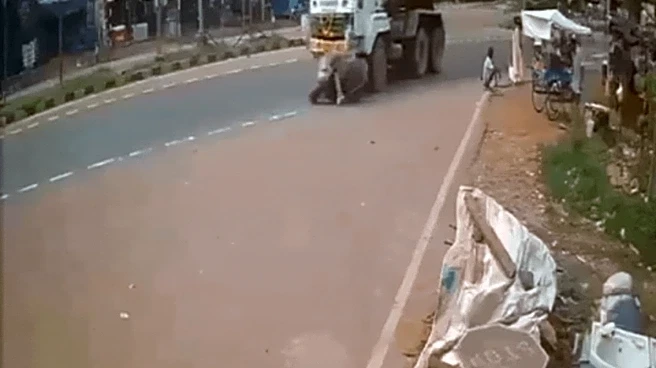 Shocking Escape! Andhra Pradesh Man Run Over by Concrete Mixer Truck, Miraculously Survives — Watch