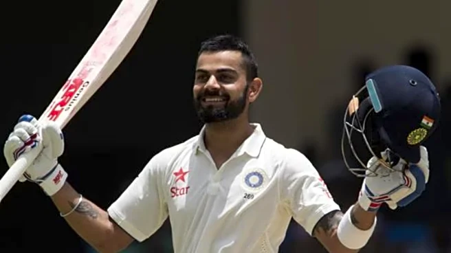 Virat Kohli’s double century at North Sound in 2016 was a historic moment. India posted 566/8 in the first innings, with Kohli smashing 200 from 283 balls, including 24 fours. Shikhar Dhawan (84), Ravichandran Ashwin (113), and Amit Mishra (53) also contributed.