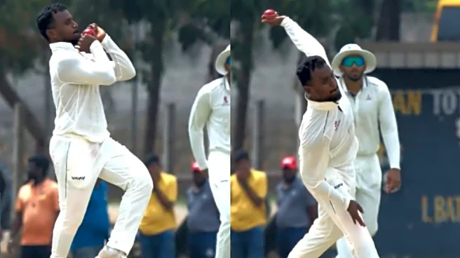 On his return on Day 1 of the Tamil Nadu-Jharkhand clash at Coimbatore, the left-arm spinner finished with figures of 2 for 99 in 28 overs. Jharkhand, led by Ishan Kishan, ended the day at 307 for 6 after choosing to bat first. Chandrasekar dismissed Kumar Suraj (3) early and later stumped Kumar Kushagra (11) through wicketkeeper Narayan Jagadeesan. Tamil Nadu’s bowling attack, spearheaded by Gurjapneet Singh (3/51) and Sandeep Warrier (1/50), supported Chandrasekar, providing the much-needed control in the middle overs.