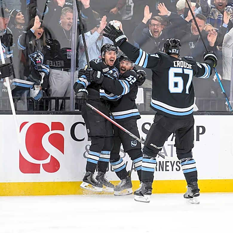Shea Theodore scored on a snap shot from the high slot with 51.5 seconds left in overtime as the Vegas Golden Knights beat the Utah Mammoth 5-4 on Monday night after squandering a three-goal lead, tying the first-round playoff series at two games apiece