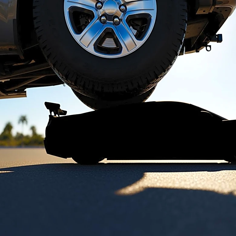 Elevated Pickup Truck Drives Over Lamborghini in Florida, Highlighting Blind Spot Dangers